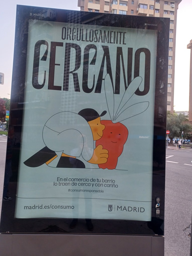 El Ayuntamiento de Madrid ha llenado la ciudad de carteles que anuncian las bondades del comercio cercano, de la tienda de la esquina, del pequeño establecimiento de barrio. Y mientras, ese mismo barrio se llena de supermercados, de grandes superficies que hacen imposible la supervivencia de los pequeños comercios al parecer, tan queridos por el Consistorio.En la zona en la que vivo-distrito de Ciudad Lineal- y en un radio de 500 metros, tengo a mi disposición 3 Carrefoures-uno grande- 2 Dias- uno grande- y un BM. ¿ Cuantas pequeñas tiendas caben en esas franquicias?
